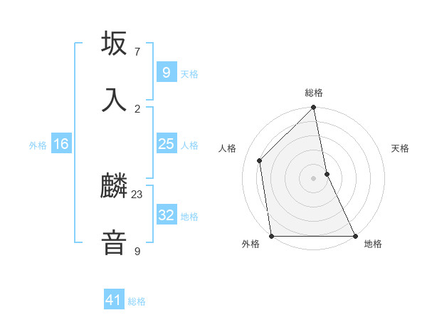 坂入 麟音さんを姓名の画数から五運を鑑定