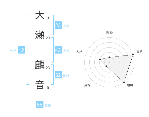 大瀬 麟音さんを姓名の画数から五運を鑑定