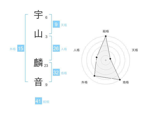 宇山 麟音さんを姓名の画数から五運を鑑定