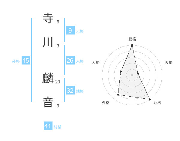 寺川 麟音さんの総格は41画の5点!