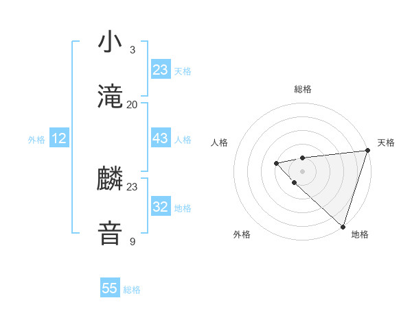 小滝 麟音さんを姓名の画数から五運を鑑定