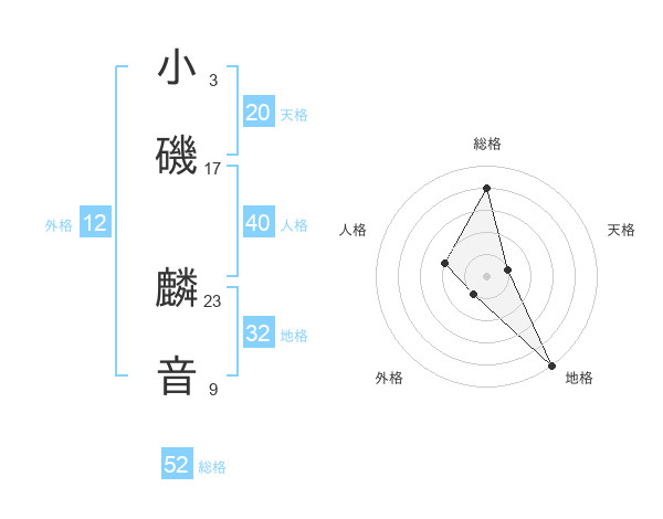 小磯 麟音さんの総格は52画の4点!