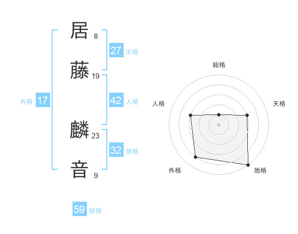 居藤 麟音さんの総格は59画の1点!