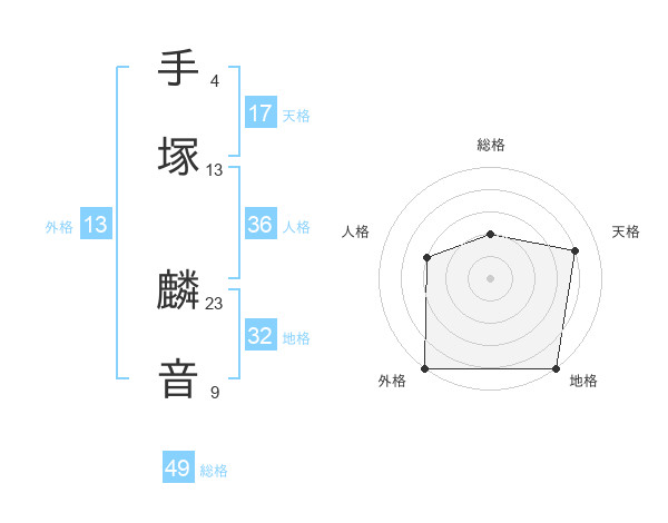 手塚 麟音さんを姓名の画数から五運を鑑定