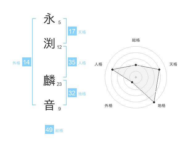 永渕 麟音さんを姓名の画数から五運を鑑定