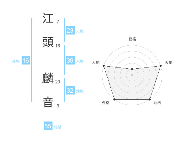 江頭 麟音さんの総格は55画の1点!