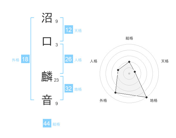 沼口 麟音さんの地格は32画の5点!