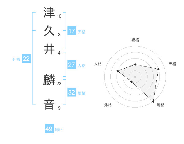津久井 麟音さんを姓名の画数から五運を鑑定