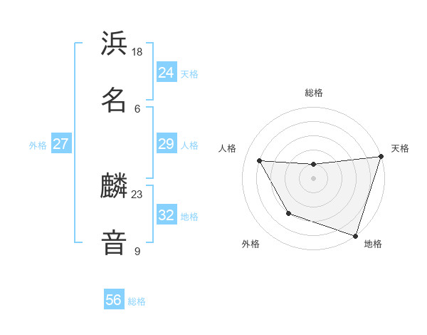 浜名 麟音さんを姓名の画数から五運を鑑定