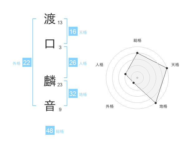 渡口 麟音さんの外格は22画の1点!