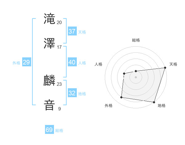 滝澤 麟音さんの総格は69画の1点!