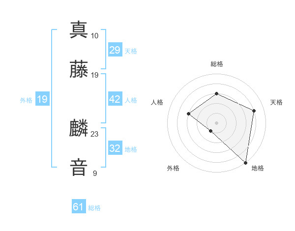 真藤 麟音さんの総格は61画の3点!
