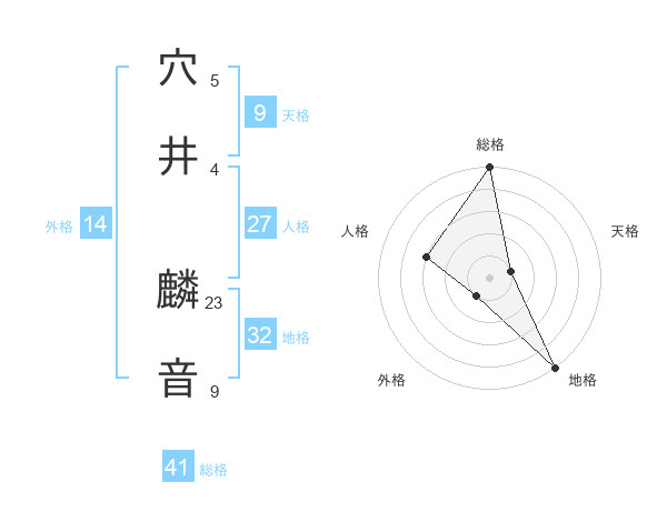 穴井 麟音さんの総格は41画の5点!