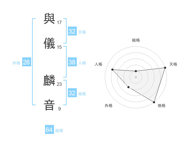 與儀 麟音さんの天格は32画の5点!