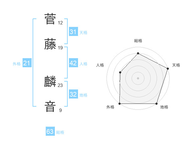 菅藤 麟音さんの天格は31画の5点!