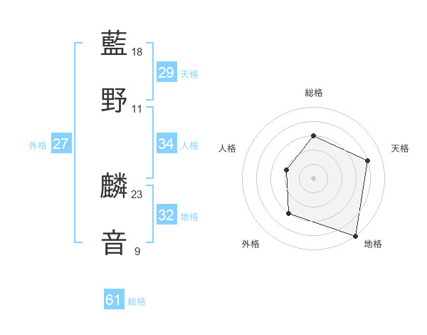 藍野 麟音さんの総格は61画の3点!