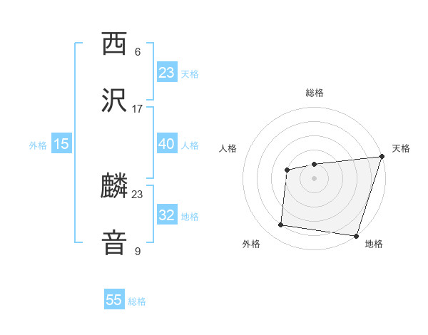 西沢 麟音さんの天格は23画の5点!