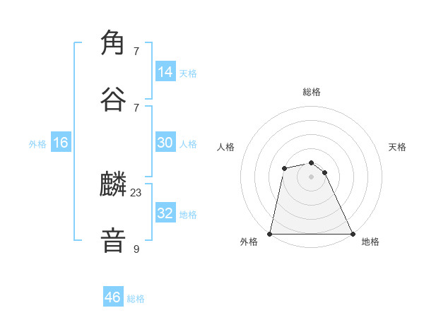 角谷 麟音さんを姓名の画数から五運を鑑定