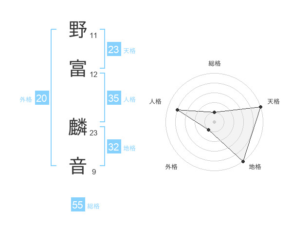 野富 麟音さんの天格は23画の5点!