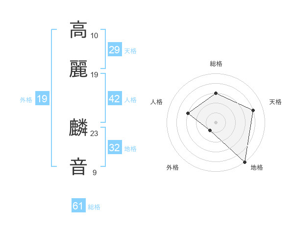 高麗 麟音さんの総格は61画の3点!