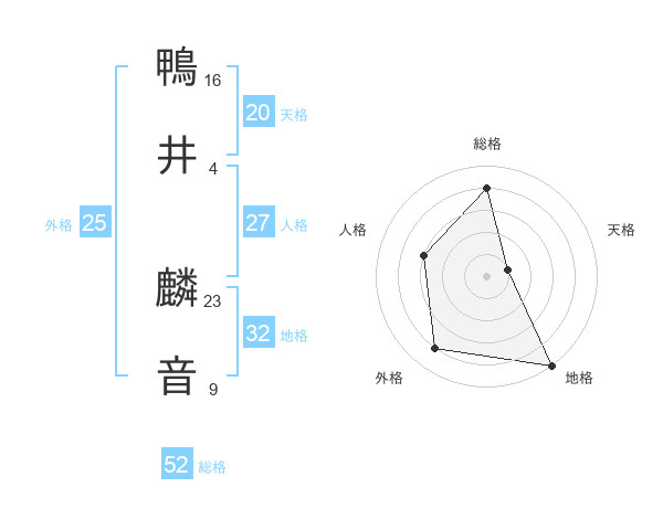 鴨井 麟音さんを姓名の画数から五運を鑑定