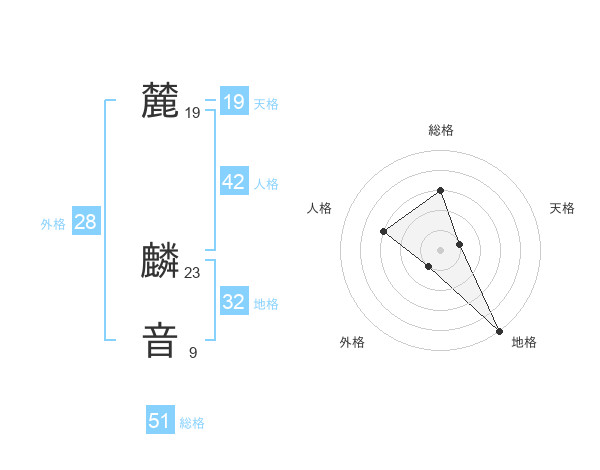 麓 麟音さんの総格は51画の3点