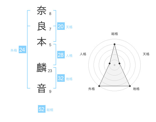 奈良本 麟音さんの総格は52画の4点!