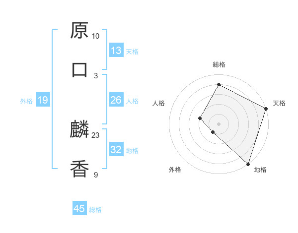 原口 麟香さんの総格は45画の4点!