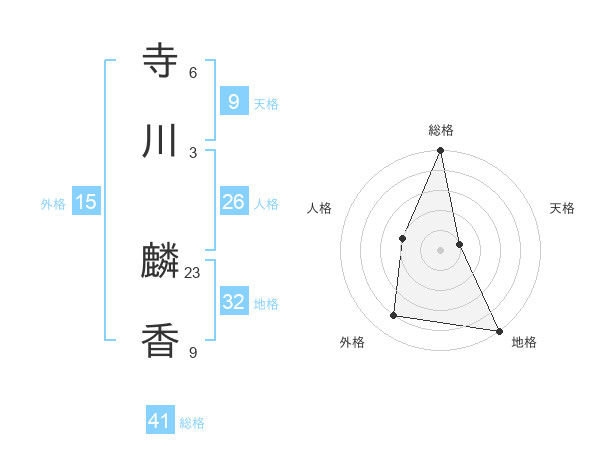 寺川 麟香さんの総格は41画の5点!