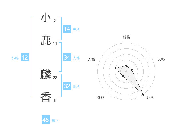 小鹿 麟香さんの総格は46画の1点!