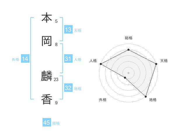 本岡 麟香さんを姓名の画数から五運を鑑定