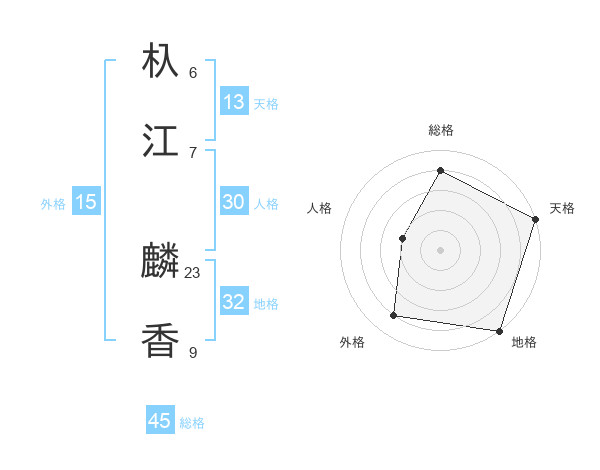 杁江 麟香さんの総格は45画の4点!
