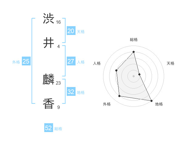 渋井 麟香さんを姓名の画数から五運を鑑定