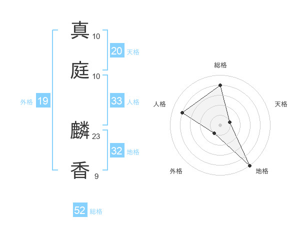 真庭 麟香さんを姓名の画数から五運を鑑定