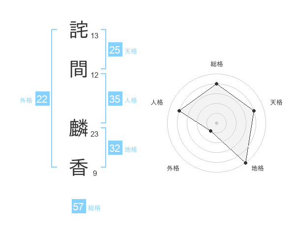 詫間 麟香さんを姓名の画数から五運を鑑定