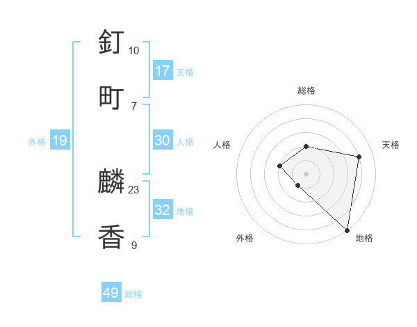 釘町 麟香さんの地格は32画の5点!