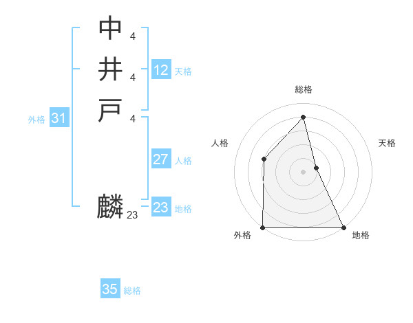 中井戸 麟さんの総格は35画の4点!