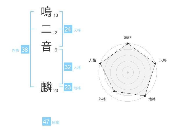 嗚二音 麟さんの総格は47画の5点!