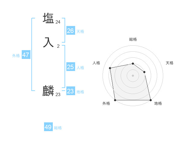 塩入 麟さんの外格は47画の5点!