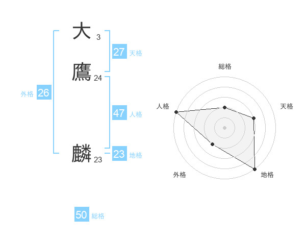 大鷹 麟さんの総格は50画の2点!