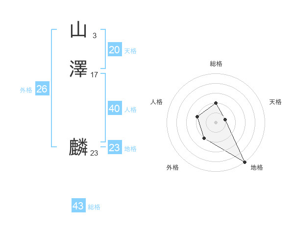 山澤 麟さんの天格は20画の1点!