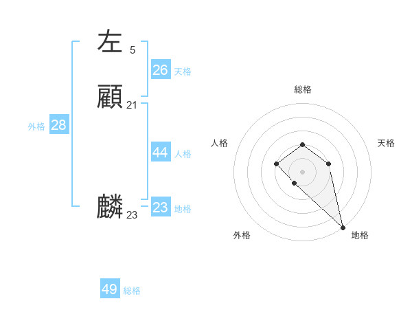 左顧 麟さんの総格は49画の2点!