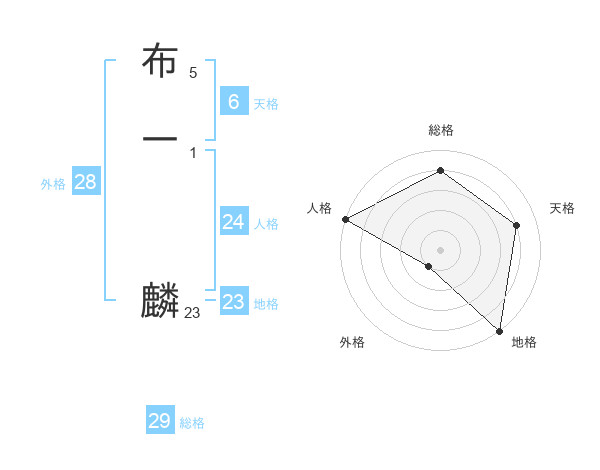 布一 麟さんの総格は29画の4点!
