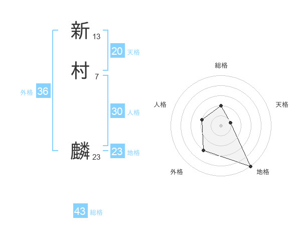 新村 麟さんの総格は43画の2点!