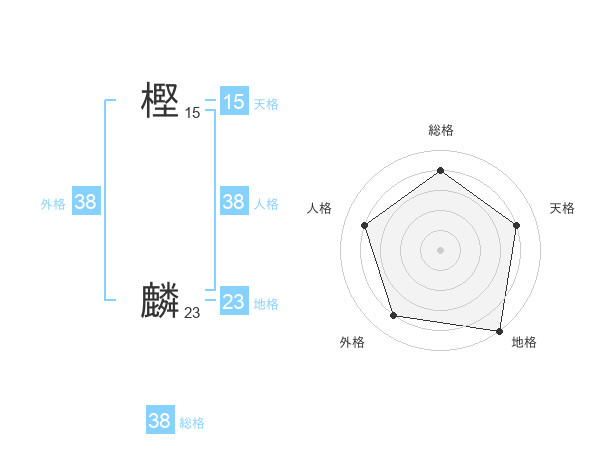 樫 麟さんの総格は38画の4点