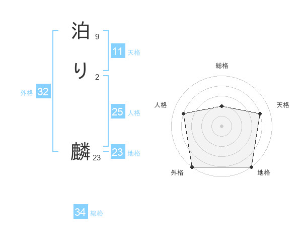 泊り 麟さんの地格は23画の5点!