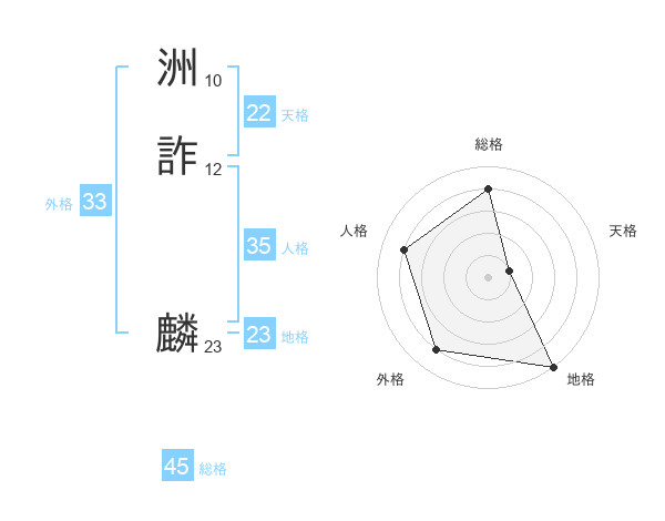 洲詐 麟さんを姓名の画数から五運を鑑定