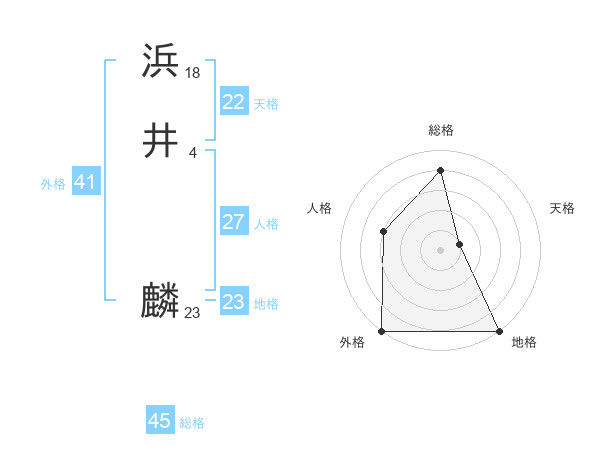 浜井 麟さんの総格は45画の4点!