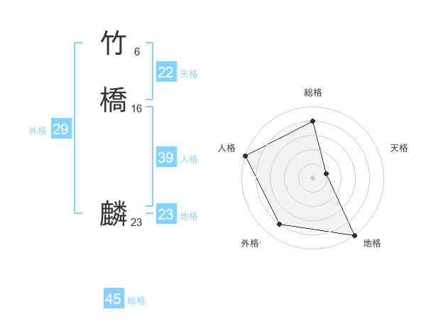 竹橋 麟さんの総格は45画の4点!