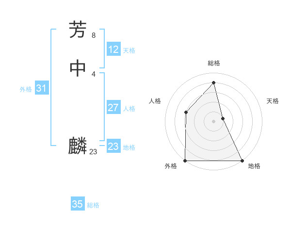 芳中 麟さんの総格は35画の4点!